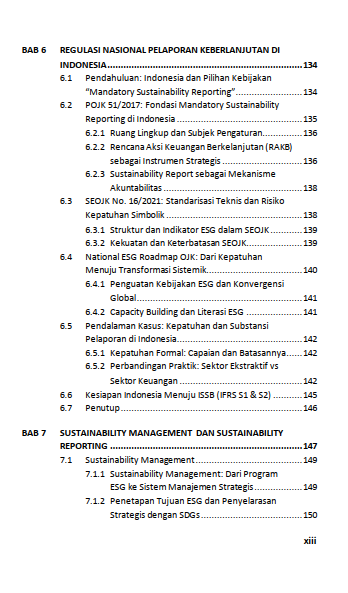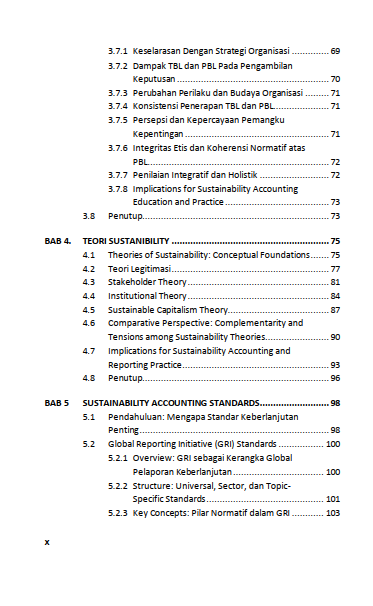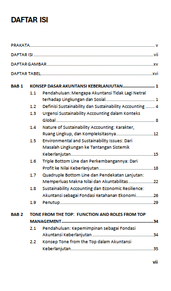 Berikut Daftar Isi Buku Akuntansi Keberlanjutan: Konsep, Teori, Standar Global, dan Regulasi Indonesia Volume 1, diantaranya:
