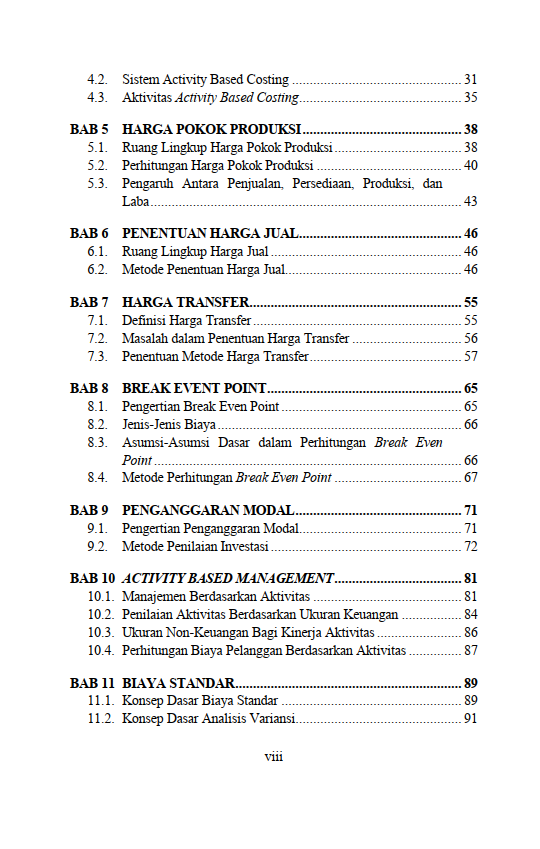 Berikut Daftar Isi Buku Akuntansi yang berjudul Buku Akuntansi Manajemen Pendekatan Teori dan Kasus, diantaranya: