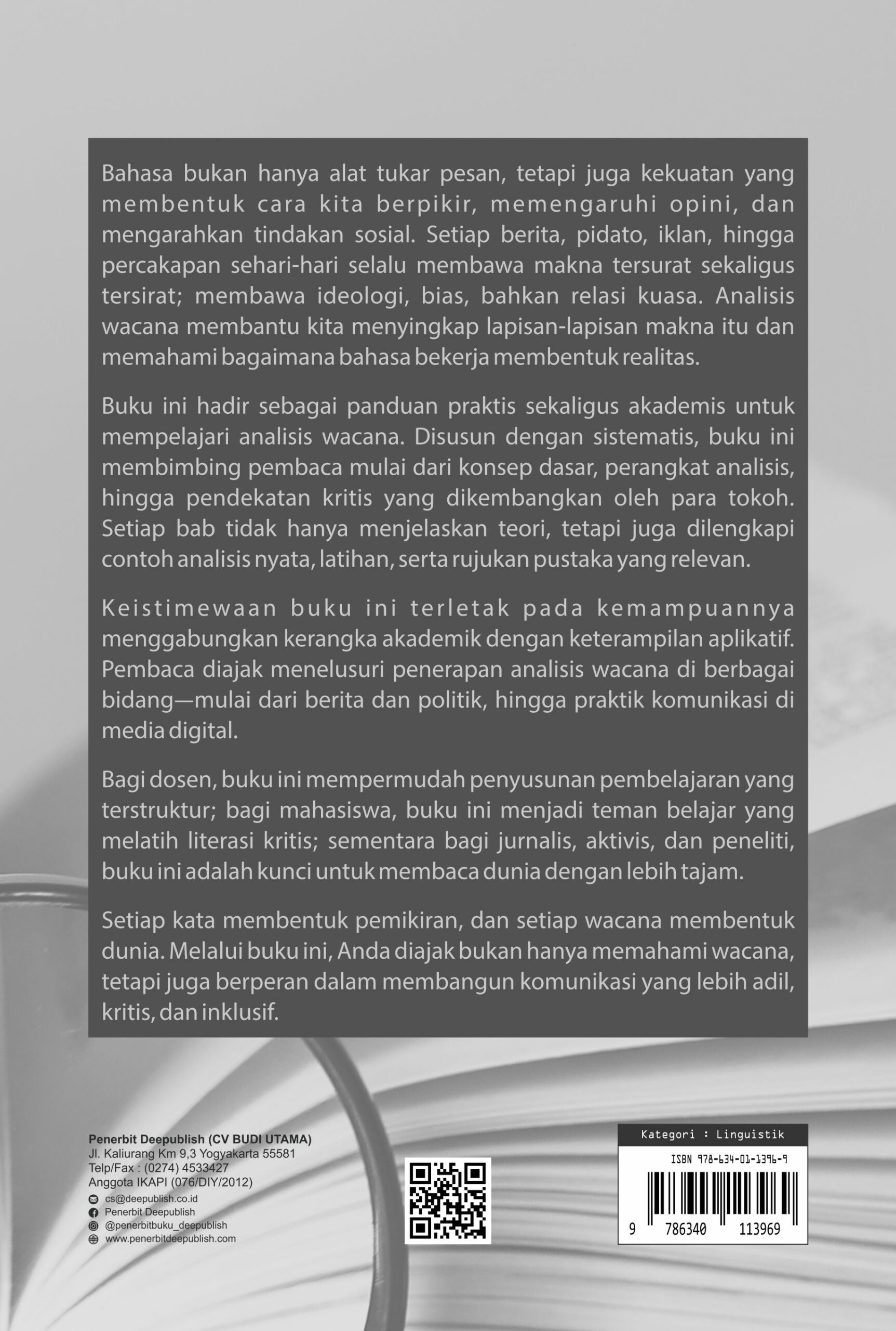 Buku Analisis Wacana: Konsep dan Aplikasinya diterbitkan oleh Penerbit Buku Pendidikan Deepublish.