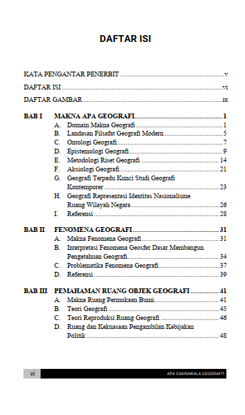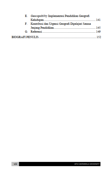 Hamparan alam semesta beserta segala isinya senantiasa menyimpan rahasia kehidupan manusia secara amat mendalam setiap waktu. Pemahaman ruang permukaan bumi beserta hukum waktu keruangan terus menggerakkan roda peradaban dari masa ke masa tanpa sebuah henti. Rentetan peristiwa alam di lingkungan sekitar senantiasa membentuk jalinan cerita bernilai luar biasa bagi setiap penghuni dunia fana. Penguasaan wilayah beserta tata letak keruangan selalu memengaruhi arah pengambilan keputusan penting dalam ranah kekuasaan politik sebuah kawasan negara. Pembacaan ragam gejala alam beserta penelusuran sejarah ruang hidup sejatinya merumuskan landasan utama keilmuan bumi pada peradaban era modern. Seluruh kaitan erat antara wujud fisik bentang lingkungan dengan keberadaan manusia tersebut pada dasarnya melahirkan hakikat sejati ilmu geografi secara amat utuh.