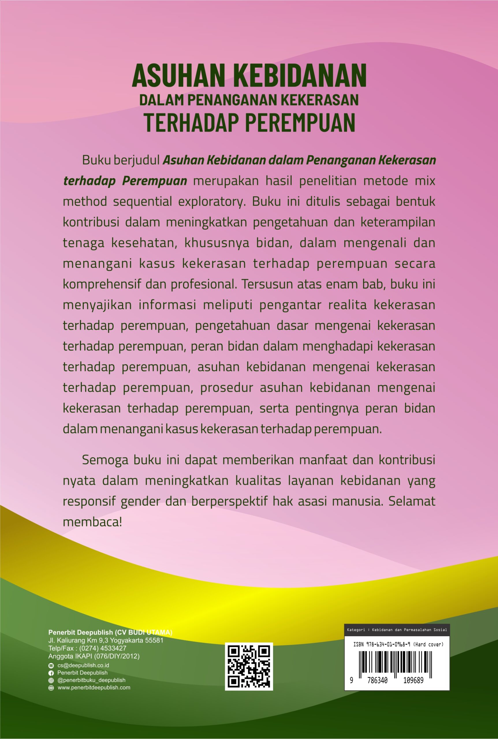 Sinopsis Buku Asuhan Kebidanan dalam Penanganan Kekerasan terhadap Perempuan Buku Asuhan Kebidanan dalam Penanganan Kekerasan terhadap Perempuan Buku Kebidanan yang berjudul Buku Asuhan Kebidanan dalam Penanganan Kekerasan terhadap Perempuan merupakan karya Ria Niari Nasution, dkk. Kekerasan terhadap perempuan dapat terjadi dalam keadaan hidup yang normal maupun keadaan konflik dan perang. Kekerasan terhadap perempuan yang terjadi dalam kehidupan normal bisa terjadi pada hubungan dekat/pribadi dan keluarga misalnya menjadi korban kesewenangan pacar/tunangan/suami/mantan suami/ayah/orang dewasa lainnya; kekerasan yang terjadi di dunia kerja dan masyarakat misalnya terjadi pelecehan seksual di tempat umum sehingga membuat perempuan tidak nyaman; kekerasan dalam praktik-praktik budaya misalnya terjadi kawin di usia muda saat perempuan belum siap secara fisik psikologis dan lainnya. Bidan memiliki peran penting dalam melaksanakan upaya promotif dan preventif untuk mencegah kekerasan terhadap perempuan. Tugas dan tanggung jawab Bidan dalam meningkatkan kesadaran masyarakat untuk mengurangi risiko terjadinya tindak kekerasan. Buku ini menguraikan mulai dari konsep dasar kekerasan terhadap perempuan, bentuk dan dampaknya, penyebab serta faktor risikonya, hingga kebijakan nasional dan internasional yang relevan. Selanjutnya, pembahasan difokuskan pada peran bidan sebagai tenaga kesehatan garda depan yang memiliki tanggung jawab untuk melakukan deteksi dini, memberikan dukungan psikososial, melakukan tindakan medis awal, serta merujuk korban ke layanan yang sesuai. Buku Asuhan Kebidanan dalam Penanganan Kekerasan terhadap Perempuan sangat cocok bagi para peneliti, mahasiswa, dan praktisi di bidang kebidanan yang ingin meningkatkan kualitas layanan kebidanan yang responsif gender dan berperspektif hak asasi manusia. Berikut Daftar Isi Buku Kebidanan yang berjudul Buku Asuhan Kebidanan dalam Penanganan Kekerasan terhadap Perempuan, diantaranya: