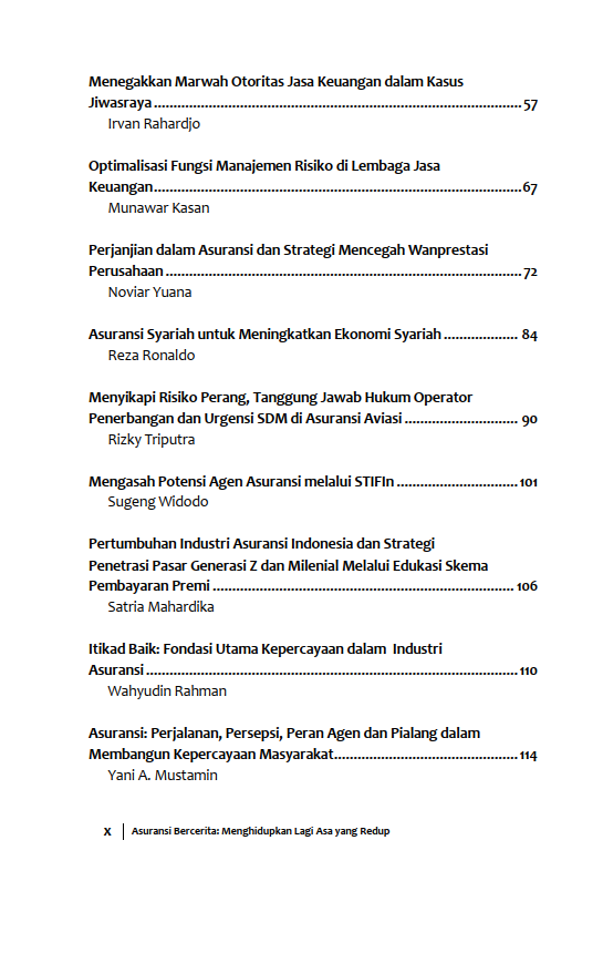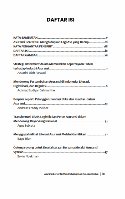 Berikut Daftar Isi Buku Asuransi Bercerita: Menghidupkan Lagi Asa yang Redup, diantaranya: