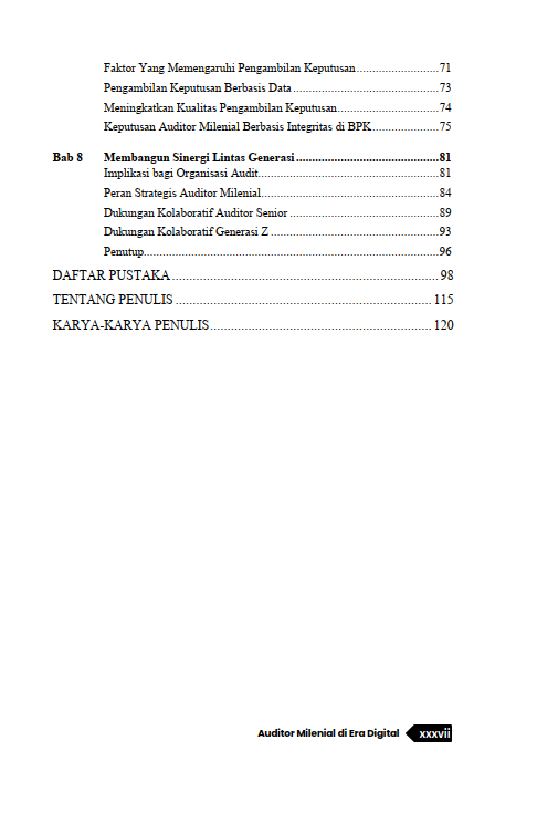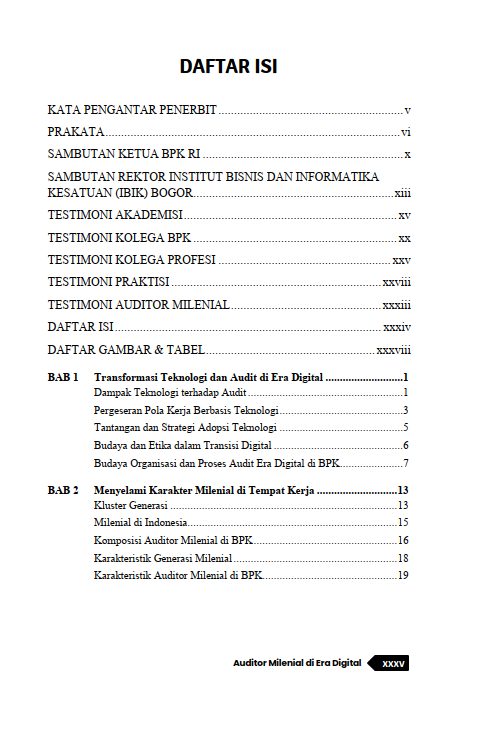 Berikut Daftar Isi Buku Manajemen yang berjudul Buku Auditor Milenial di Era Digital, diantaranya: