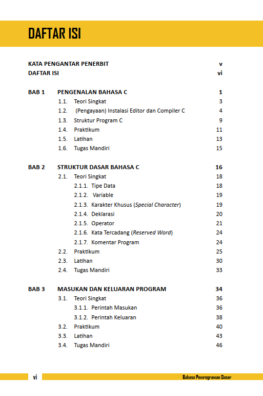Bahasa C dikatakan sebagai bahasa pemrograman terstruktur, karena strukturnya menggunakan fungsi-fungsi sebagai program-program bagian (subruntime). Fungsi-fungsi selain fungsi utama merupakan program-program bagian. Fungsi-fungsi ini dapat ditulis setelah fungsi utama. Semoga buku ini bermanfaat bagi segenap pembaca khususnya kalangan mahasiswa yang ingin memperkaya wawasan keilmuan mengenai bahasa pemrograman.