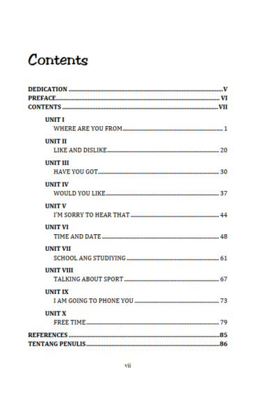 Berikut Daftar Isi Buku Bahasa Inggris yang berjudul Buku Ajar Basic English Grammar Book, diantaranya: