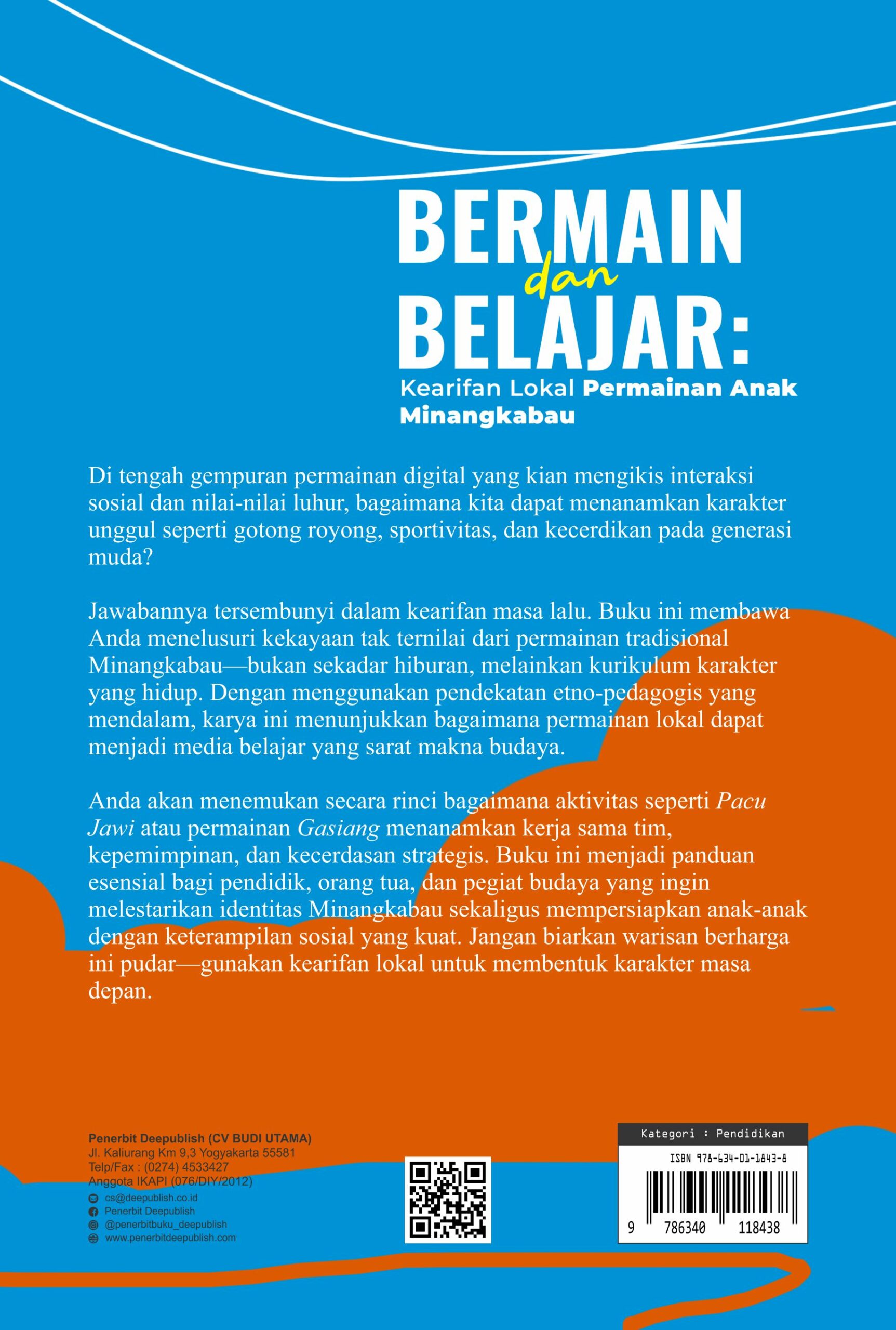 Jawabannya tersembunyi dalam kearifan masa lalu. Buku ini membawa Anda menelusuri kekayaan tak ternilai dari permainan tradisional Minangkabau bukan sekadar hiburan, melainkan kurikulum karakter yang hidup. Dengan menggunakan pendekatan etno-pedagogis yang mendalam, karya ini menunjukkan bagaimana permainan lokal dapat menjadi media belajar yang sarat makna budaya. Anda akan menemukan secara rinci bagaimana aktivitas seperti Pacu Jawi atau permainan Gasiang menanamkan kerja sama tim, kepemimpinan, dan kecerdasan strategis. Buku ini menjadi panduan esensial bagi pendidik, orang tua, dan pegiat budaya yang ingin melestarikan identitas Minangkabau sekaligus mempersiapkan anak-anak dengan keterampilan sosial yang kuat. Jangan biarkan warisan berharga ini pudar gunakan kearifan lokal untuk membentuk karakter masa depan. Buku Bermain dan Belajar: Kearifan Lokal Permainan Anak Minangkabau sangat cocok menjadi sumber inspirasi bagi pendidik, orang tua, dan masyarakat untuk melestarikan sekaligus memanfaatkan permainan tradisional sebagai media pembelajaran yang menyenangkan dan bermakna.