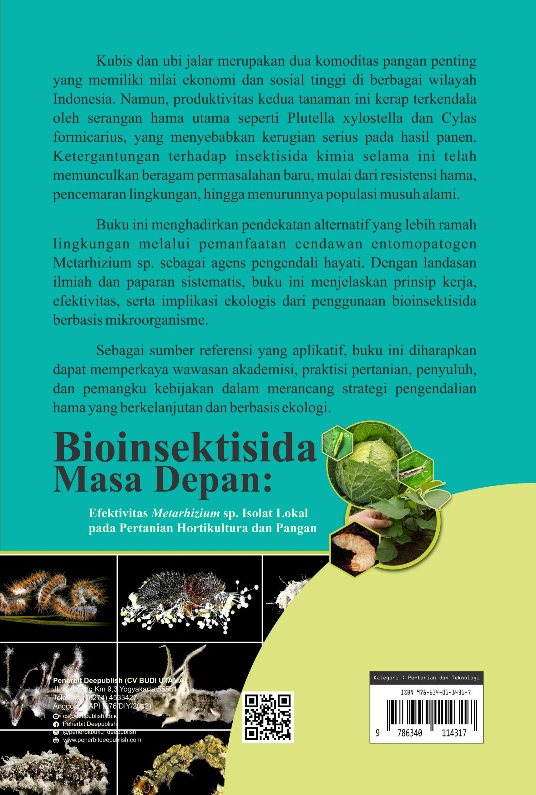 Buku Bioinsektisida Masa Depan: Efektivitas Metarhizium sp. Isolat Lokal pada Pertanian Hortikultura dan Pangan diterbitkan oleh Penerbit Buku Pendidikan Deepublish.