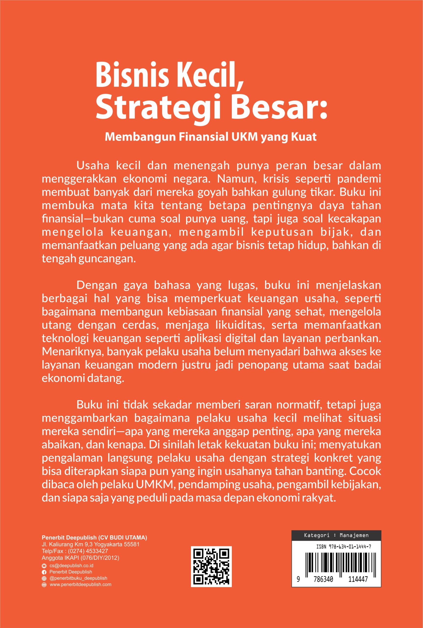 Buku Bisnis Kecil, Strategi Besar: Membangun Finansial UKM yang Kuat diterbitkan oleh Penerbit Buku Pendidikan Deepublish.