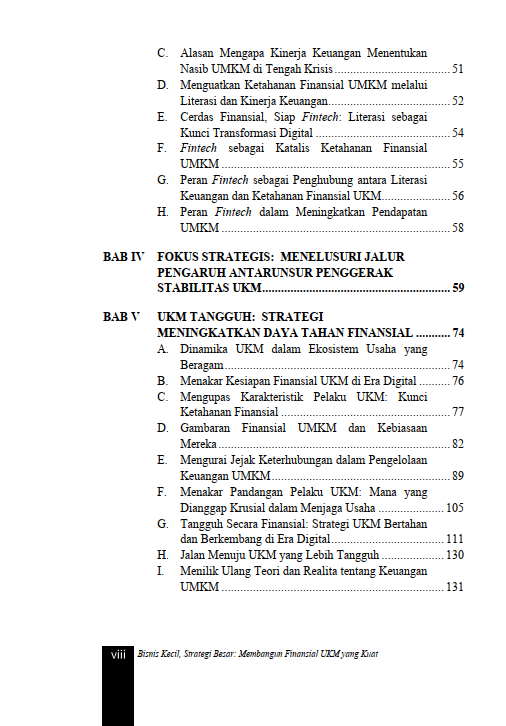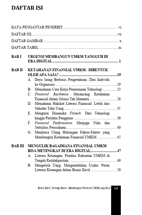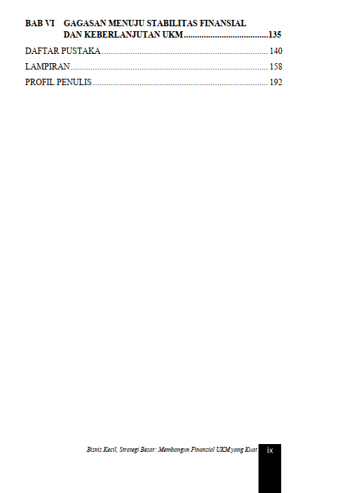 Berikut Daftar Isi Buku Manajemen yang berjudul Buku Bisnis Kecil, Strategi Besar: Membangun Finansial UKM yang Kuat, diantaranya: