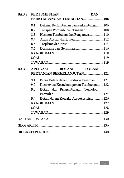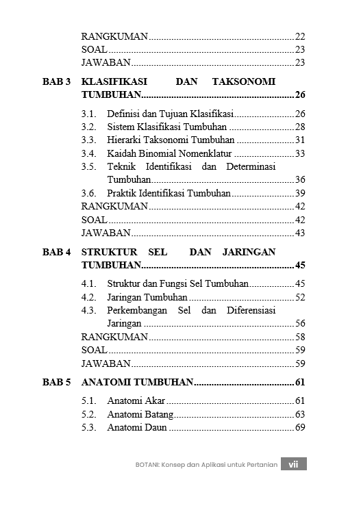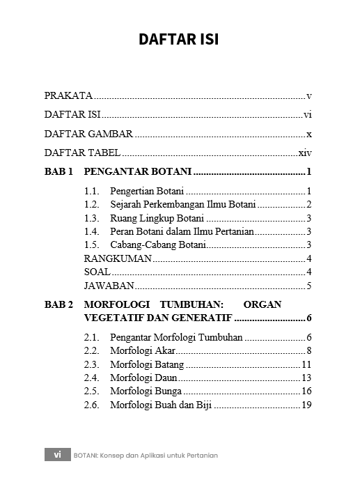 Berikut Daftar Isi Buku Pertanian yang berjudul Buku Botani: Konsep dan Aplikasi untuk Pertanian, diantaranya: