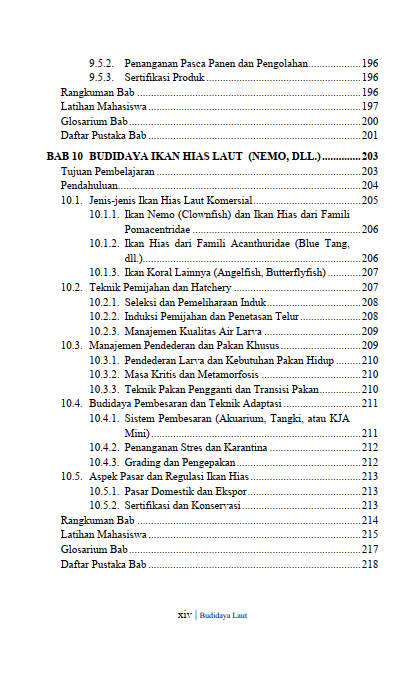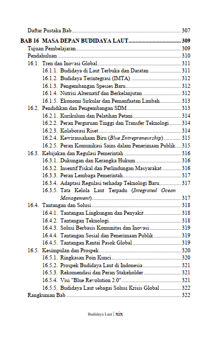 Buku ajar Budidaya Laut hadir sebagai panduan komprehensif yang menjembatani kesenjangan pengetahuan. Anda tidak hanya akan mempelajari aspek teknis produksi berbagai komoditas unggulan, tetapi juga menguasai prinsip-prinsip ekologi, analisis keberlanjutan usaha (ekonomi dan sosial), hingga integrasi teknologi modern. Jadilah generasi profesional yang mampu mengoptimalkan sumber daya bahari Indonesia secara inovatif dan bertanggung jawab. Siapkah Anda membuka potensi tak terbatas lautan?