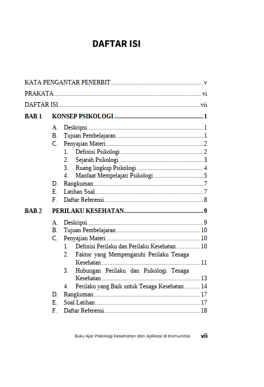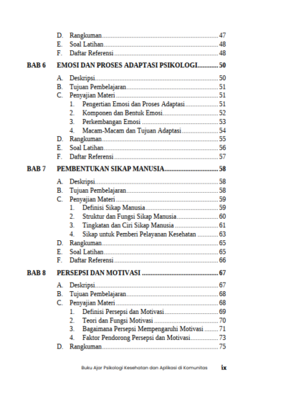 Berikut Daftar Isi Buku Psikologi yang berjudul Buku Ajar Psikologi Kesehatan dan Aplikasi di Komunitas, diantaranya: