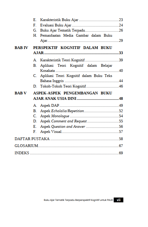 Berikut Daftar Isi Buku Pendidikan yang berjudul Buku Buku Ajar Tematik Terpadu Berperspektif Kognitif untuk Paud, diantaranya: