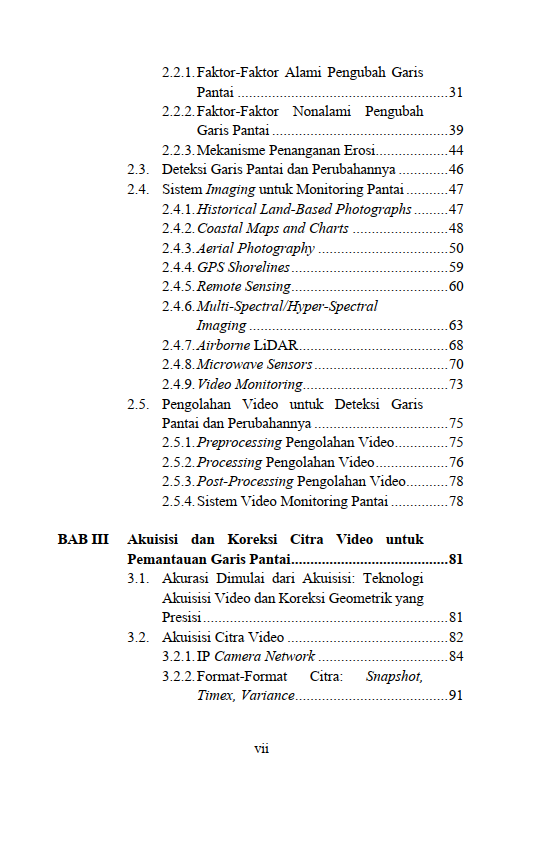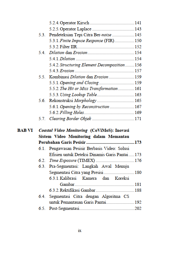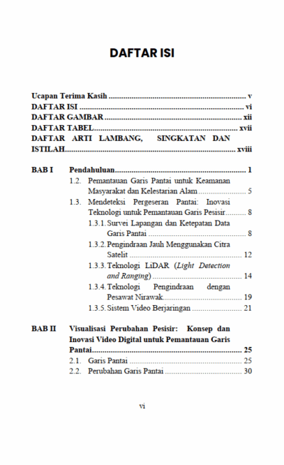 Berikut Daftar Isi Buku Teknik yang berjudul Buku Coastal Video Monitoring System: Solusi Inovatif untuk Pemantauan Dinamis Garis Pantai, diantaranya: