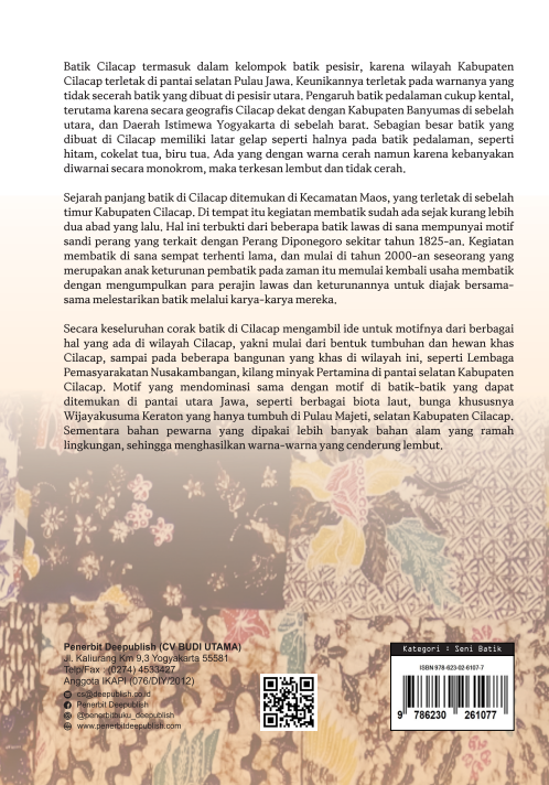 Buku Corak Batik Cilacap ini diterbitkan oleh Penerbit Buku Pendidikan Deepublish.