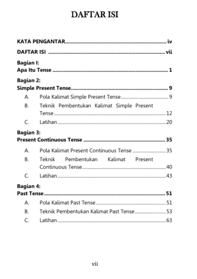 Berikut Daftar Isi Buku Bahasa Inggris yang berjudul Buku Dalil 16 Tense, diantaranya: