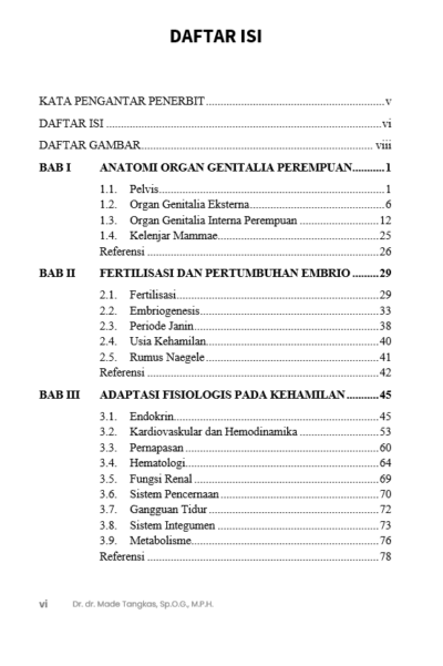 Berikut Daftar Isi Buku Kebidanan berjudul Buku Dasar – dasar Ilmu Obstetri Anatomi Reproduksi, Fertilisasi, Embriologi, Adaptasi Fisiologis Kehamilan dan Nifas Edisi I, diantaranya: