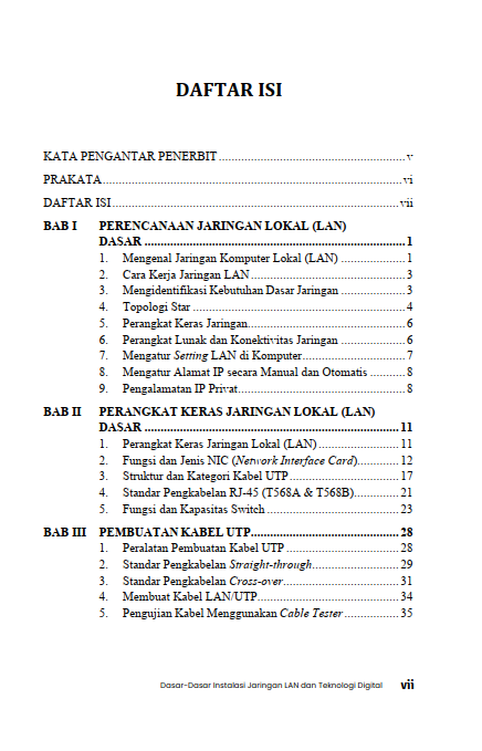 Buku Dasar-Dasar Instalasi Jaringan LAN dan Teknologi Digital adalah panduan praktis terlengkap yang akan membawa Anda dari nol hingga mampu merancang dan membangun Jaringan Lokal (LAN) yang berfungsi penuh. Lupakan teori rumit! Di sini, Anda akan belajar tuntas cara merencanakan topologi Star, memilih perangkat keras, hingga mahir membuat kabel UTP (Straight dan Crossover) yang sesuai standar T568A/B.