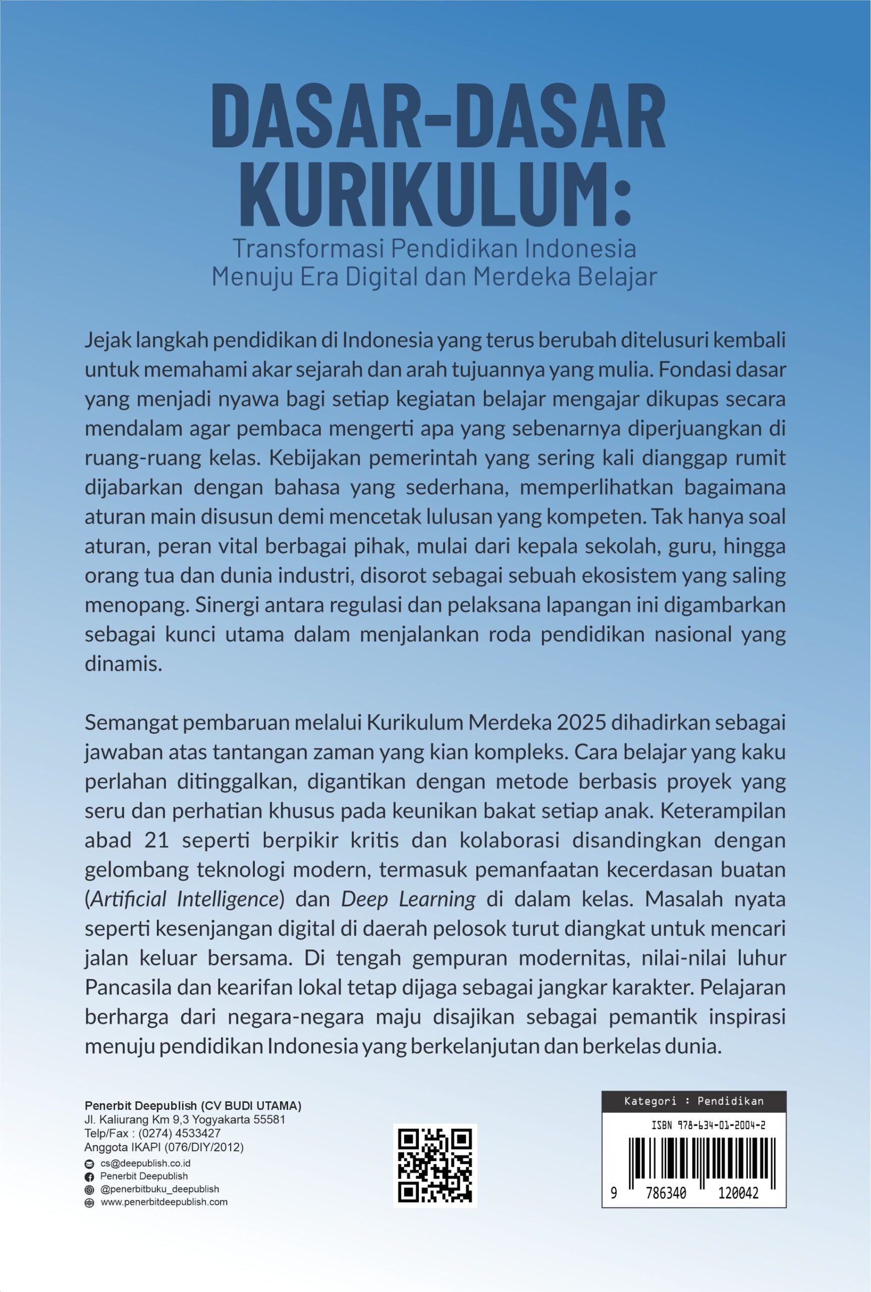 Buku Dasar-dasar Kurikulum: Transformasi Pendidikan Indonesia Menuju Era Digital dan Merdeka Belajar diterbitkan oleh Penerbit Buku Pendidikan Deepublish.