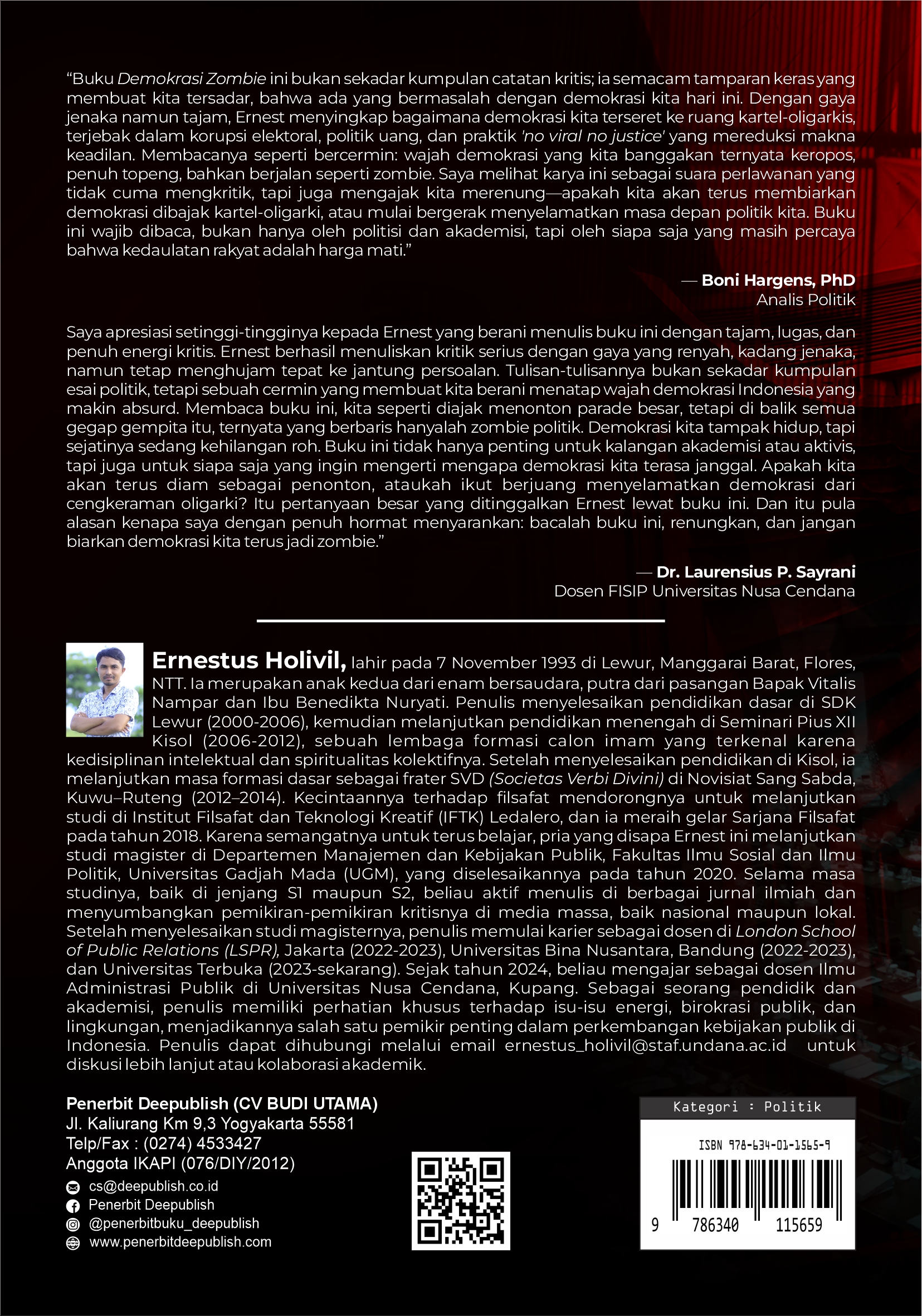 Buku Demokrasi Zombie diterbitkan oleh Penerbit Buku Pendidikan Deepublish.