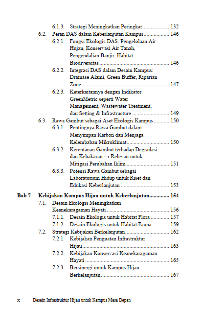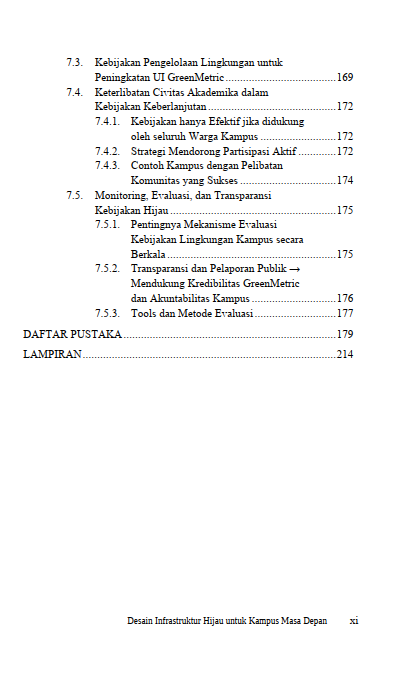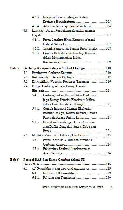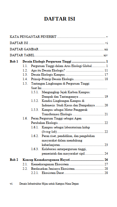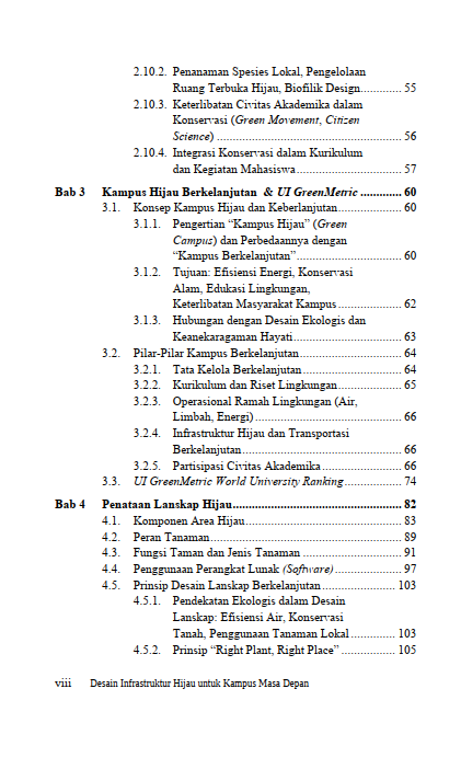 Berikut Daftar Isi Buku Teknik yang berjudul Buku Desain Infrastruktur Hijau Untuk Kampus Masa Depan, diantaranya: