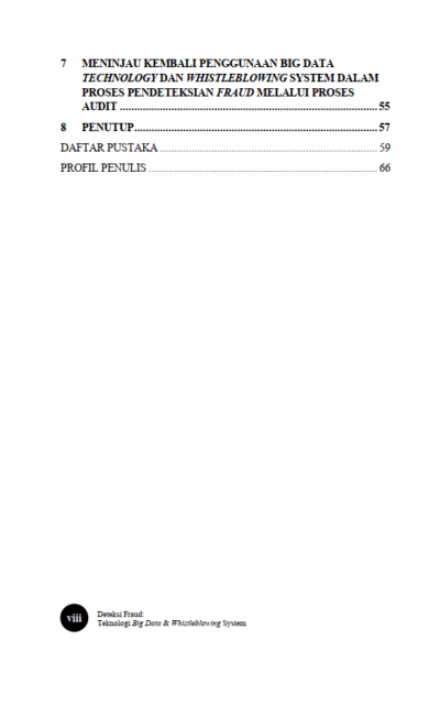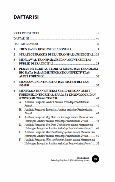Berikut Daftar Isi Buku Akuntansi yang berjudul Buku Deteksi Fraud: Teknologi Big Data & Whistleblowing System, diantaranya: