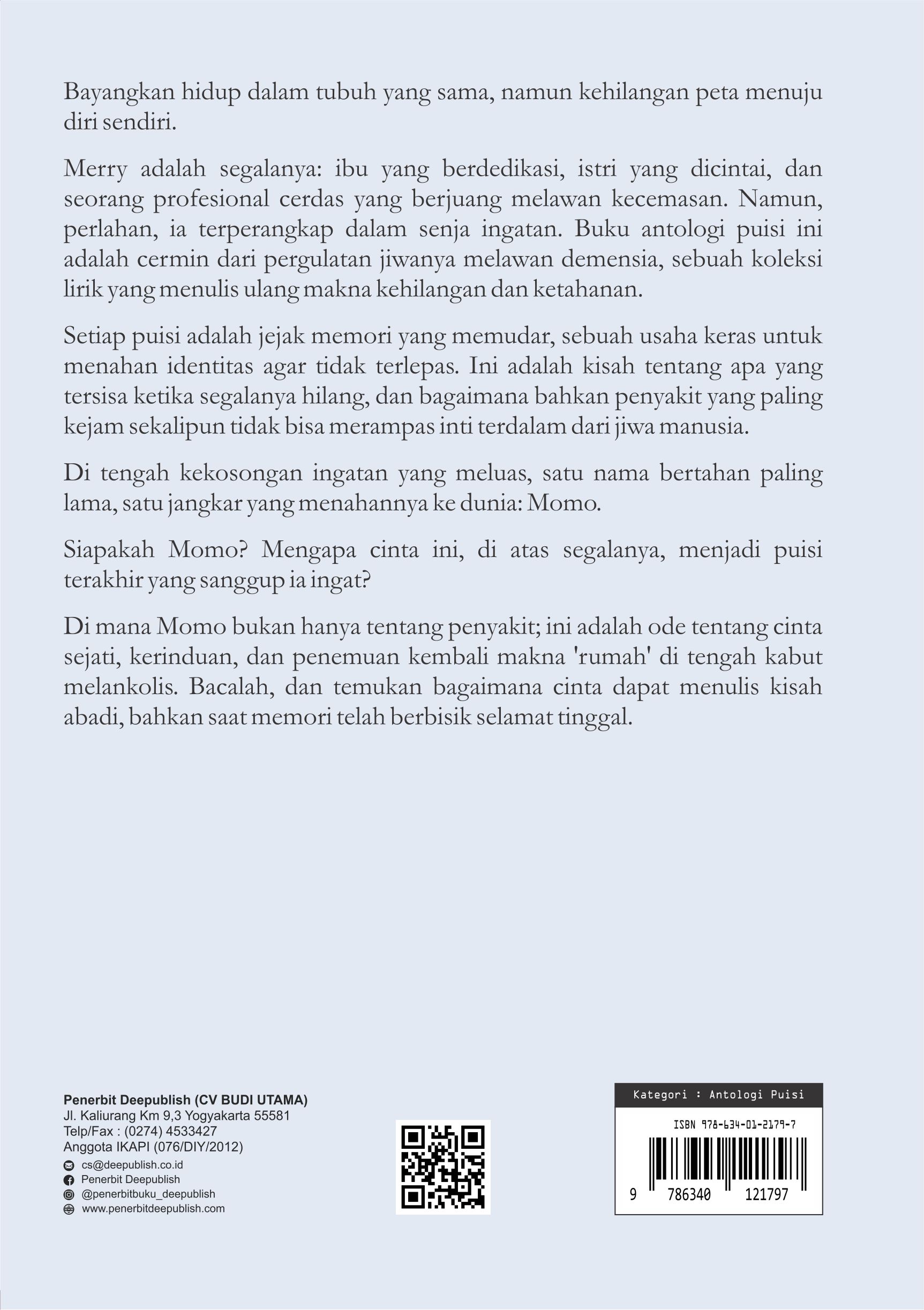Buku “Dimana Momo” “Saat Aku Tidak Lagi Diingat: Kisah tentang Cinta yang Bertahan Melebihi Memori” diterbitkan oleh Penerbit Buku Pendidikan Deepublish.