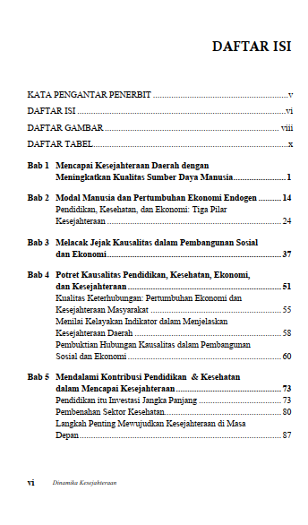 Berikut Daftar Isi Buku Administrasi Negara yang berjudul Buku Buku Dinamika Kesejahteraan: Menelusuri Peran Pendidikan dan Kesehatan terhadap Pertumbuhan Ekonomi, diantaranya: