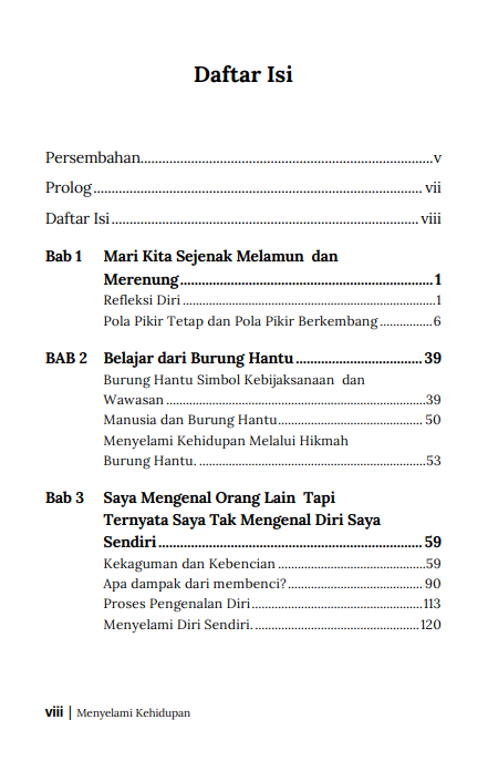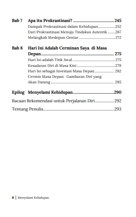 Menyelami Kehidupan bukanlah janji bahwa semua akan berjalan mulus. Justru sebaliknya, buku ini mengingatkan bahwa ada kebijaksanaan dalam menerima ketidakpastian, ada kekuatan dalam merawat kebiasaan baik, dan ada keindahan dalam hidup yang dijalani dengan kesadaran penuh.