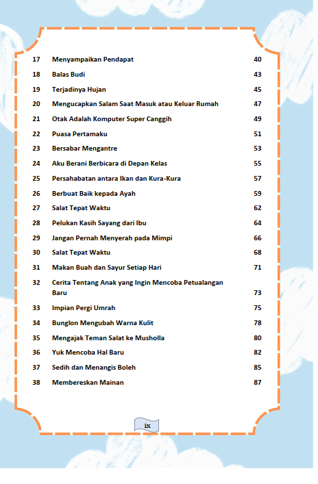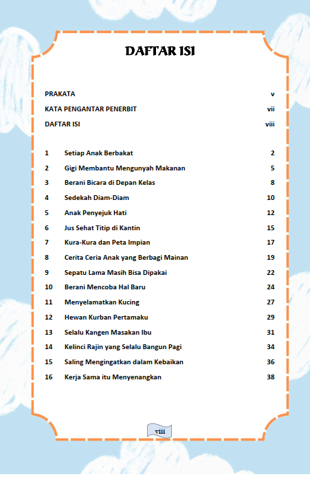 Berikut Daftar Isi Buku Cerpen yang berjudul Buku Dunia Ceria Anak untuk Sahabat Kecil, diantaranya: