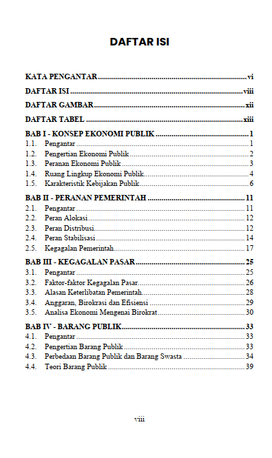 Berikut Daftar Isi Buku Ekonomi Publik, diantaranya: