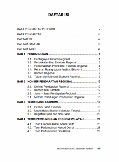 Berikut Daftar Isi Buku Ekonomi yang berjudul Buku Ekonomi Regional Teori dan Aplikasi, diantaranya: