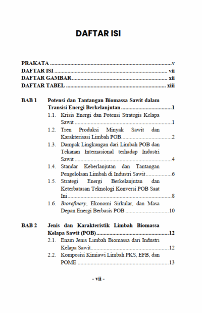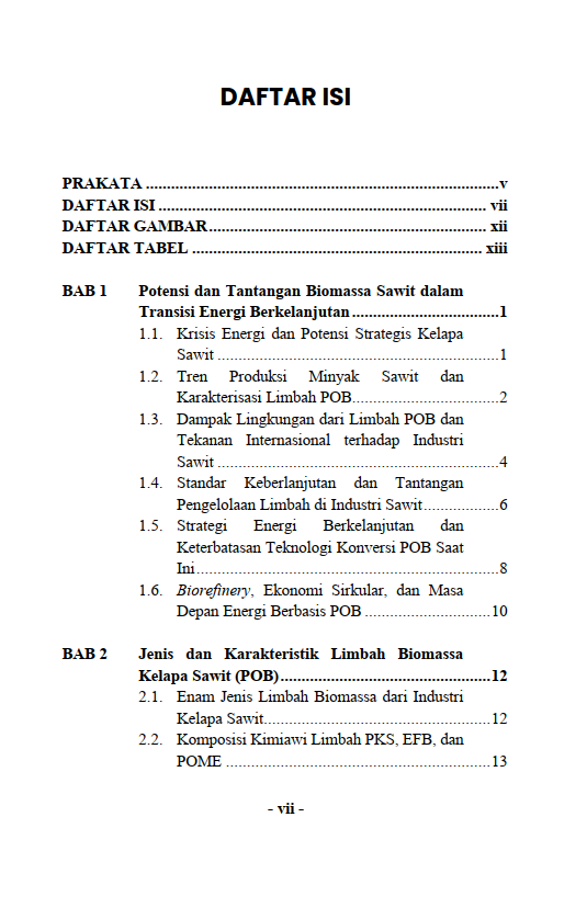 Berikut Daftar Isi Buku Teknik yang berjudul Buku Energi Hijau dari Sawit: Transformasi Limbah Menjadi Solusi Global, diantaranya: