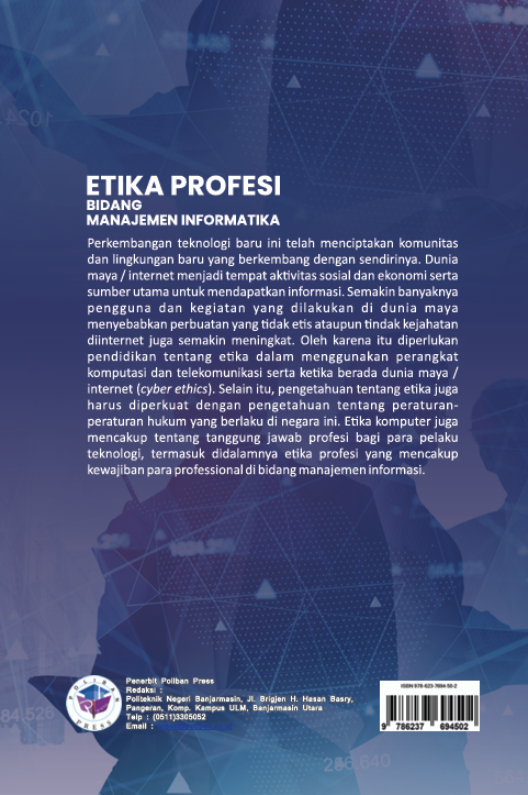 Buku Etika Profesi Bidang Manajemen Informatika diterbitkan oleh Penerbit Buku Pendidikan Deepublish.