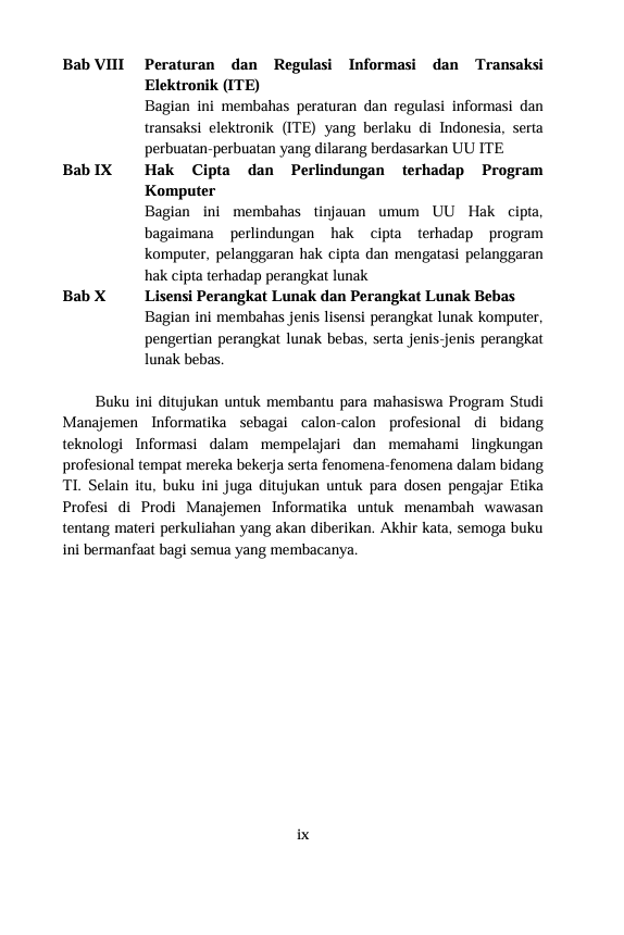 Berikut Daftar Isi Buku Manajemen yang berjudul Buku Etika Profesi Bidang Manajemen Informatika, diantaranya:
