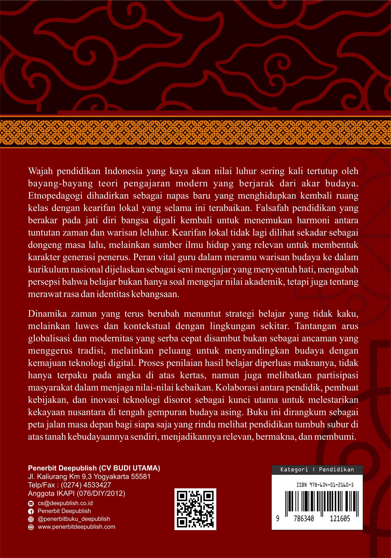 Buku Etnopedagogi: Merajut Kearifan Lokal dalam Pendidikan yang Kontekstual diterbitkan oleh Penerbit Buku Pendidikan Deepublish.