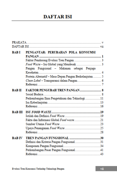 Berikut Daftar Isi Buku Pertanian yang berjudul Buku Evolusi Tren Konsumsi Terhadap Teknologi Pangan, diantaranya: