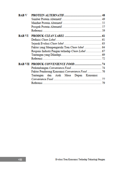 Pemborosan pangan, sang duri dalam daging, menjadi isu global yang mengancam ketahanan pangan dan menuntut solusi berkelanjutan. Pangan fungsional, sang pahlawan kesehatan, mencuri perhatian dengan manfaatnya yang melampaui kebutuhan gizi dasar. Konsumen yang kian sadar kesehatan memburu produk pangan yang mendukung gaya hidup sehat dan preventif. Protein alternatif, sang inovasi masa depan, seperti protein nabati dan serangga, muncul sebagai jawaban atas kebutuhan pangan global yang melonjak. Konsep clean label, sang simbol transparansi, menjadi pilihan bijak konsumen yang mengutamakan bahan baku alami dan proses produksi yang jujur. Buku ini seperti jendela yang membuka wawasan tentang perubahan pola konsumsi yang membentuk masa depan industri pangan.