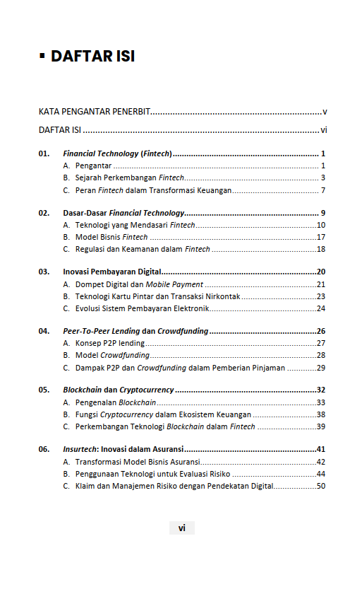 Berikut Daftar Isi Buku Ekonomi yang berjudul Buku Financial Technology 5.0, diantaranya: