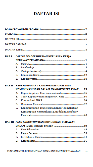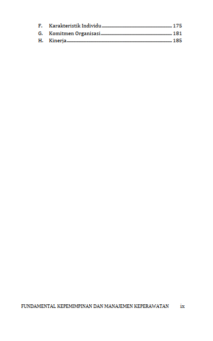 Berikut Daftar Isi Buku Keperawatan yang berjudul Buku Fundamental Kepemimpinan dan Manajemen Keperawatan, diantaranya: