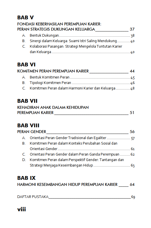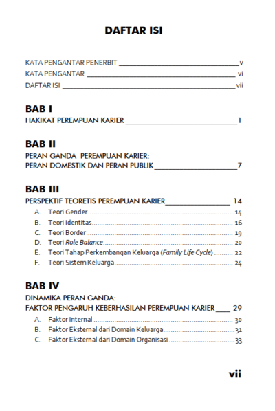 Berikut Daftar Isi Buku Psikologi berjudul Buku Gender, Karier, dan Kesejahteraan Keluarga: Dinamika Perempuan dalam Lensa Psikologi, diantaranya: