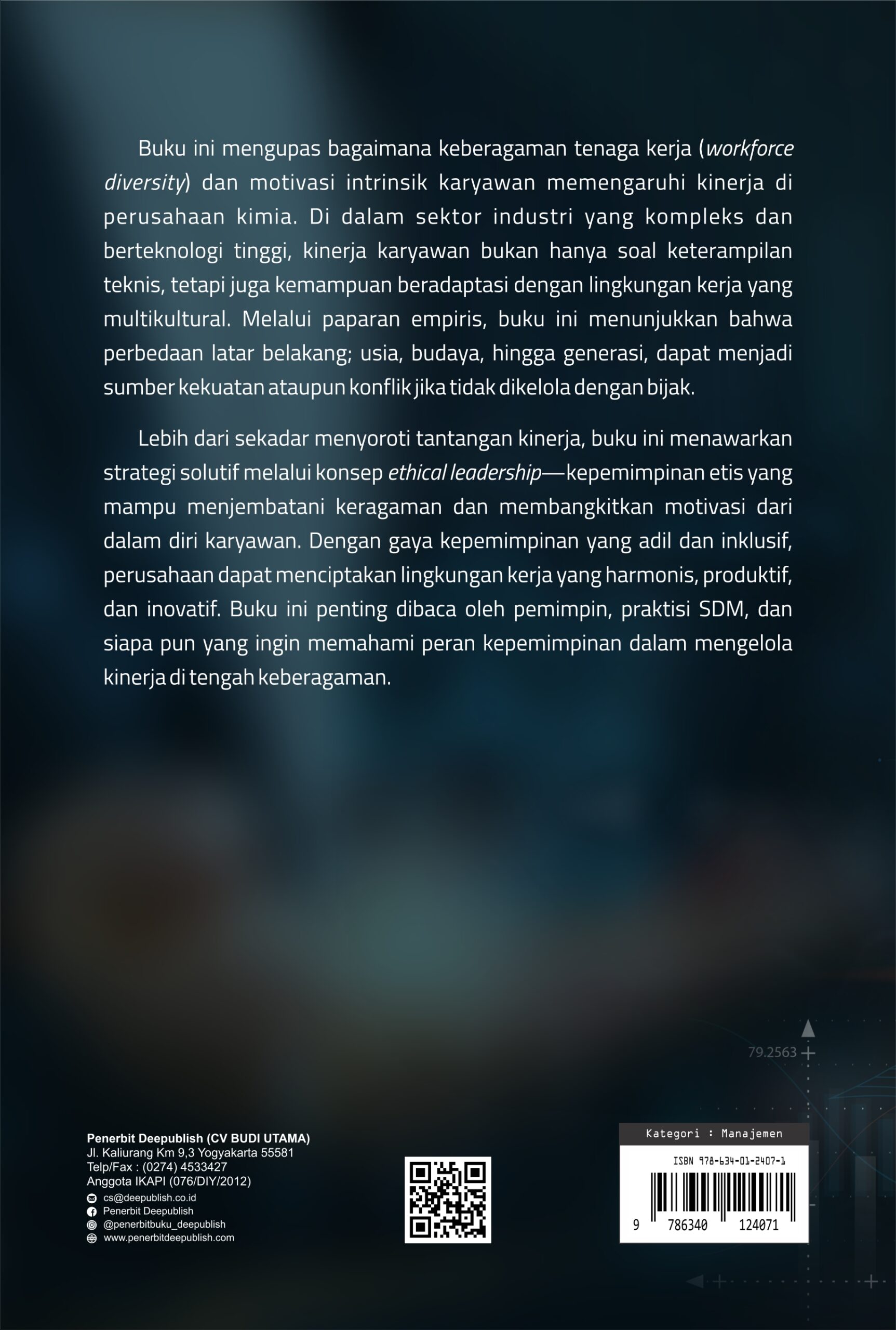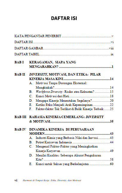 Buku ini mengupas bagaimana keberagaman tenaga kerja (workforce diversity) dan motivasi intrinsik karyawan memengaruhi kinerja di perusahaan kimia. Di dalam sektor industri yang kompleks dan berteknologi tinggi, kinerja karyawan bukan hanya soal keterampilan teknis, tetapi juga kemampuan beradaptasi dengan lingkungan kerja yang multikultural. Melalui paparan empiris, buku ini menunjukkan bahwa perbedaan latar belakang; usia, budaya, hingga generasi, dapat menjadi sumber kekuatan ataupun konflik jika tidak dikelola dengan bijak.