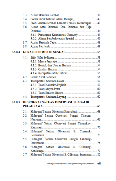 Berikut Daftar Isi Buku Teknik yang berjudul Buku Hidrograf Satuan dan Rekayasa Sungai Indonesia, diantaranya: