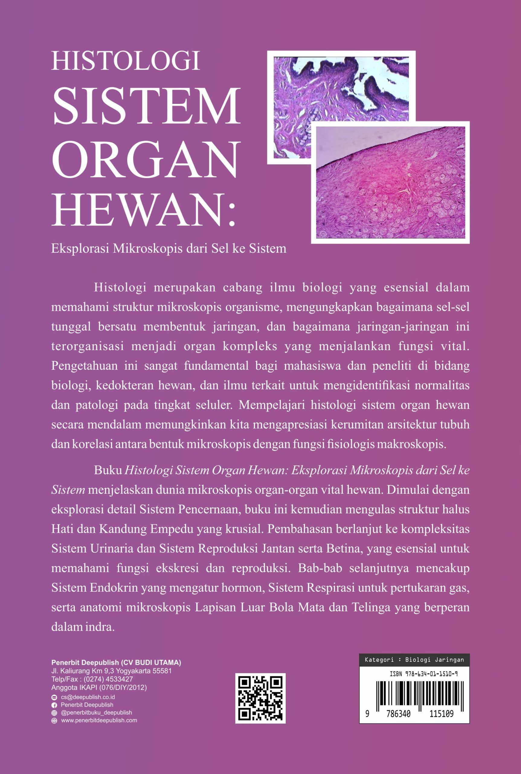 Buku Histologi Sistem Organ Hewan : Eksplorasi Mikroskopis Dari Sel Ke Sistem diterbitkan oleh Penerbit Buku Pendidikan Deepublish.