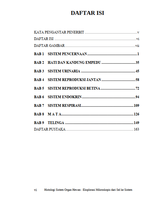Berikut Daftar Isi Buku Biologi yang berjudul Buku Histologi Sistem Organ Hewan : Eksplorasi Mikroskopis Dari Sel Ke Sistem, diantaranya: