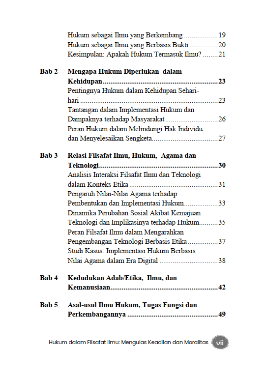Berikut Daftar Isi Buku Hukum dan Filsafat: Mengulas Keadilan dan Moralitas, diantaranya: