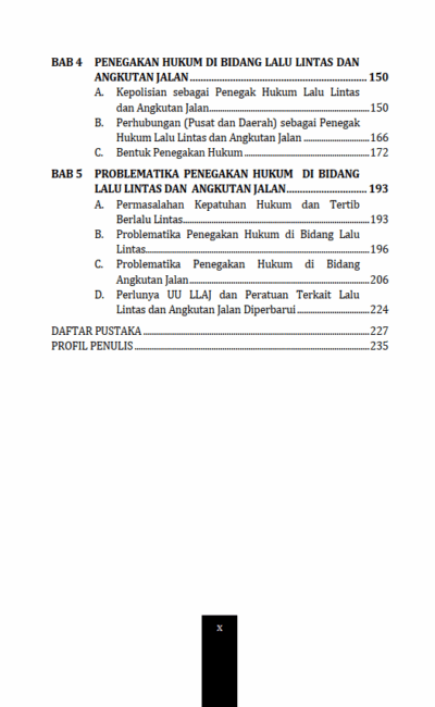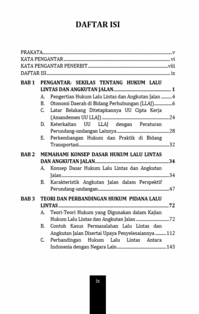 Berikut Daftar Isi Buku Hukum Lalu Lintas dan Angkutan Jalan Suatu Pengantar dan Kritik, diantaranya: