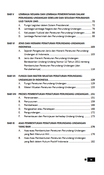 Berikut Daftar Isi Buku Hukum yang berjudul Buku Ilmu Perundang-Undangan Gesetzgebungsverfahren, Gesetzgebungsmethode Dan Gesetzgebungstechnik, diantaranya: