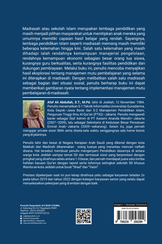 Buku Implementasi Manajemen Mutu Pembelajaran di Madrasah ini diterbitkan oleh Penerbit Buku Pendidikan Deepublish.