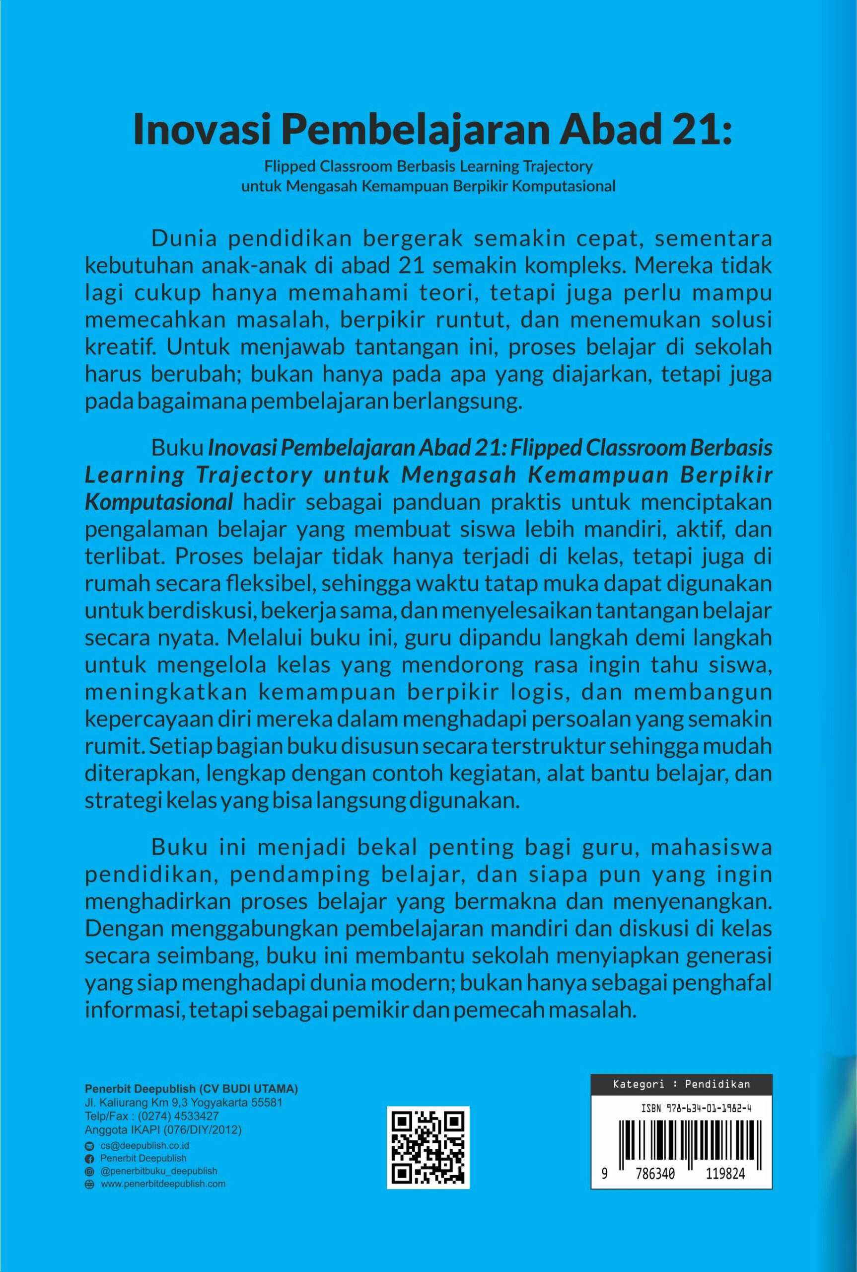 Buku Inovasi Pembelajaran Abad 21: Flipped Classroom Berbasis Learning Trajectory untuk Mengasah Kemampuan Berpikir Komputasional diterbitkan oleh Penerbit Buku Pendidikan Deepublish.